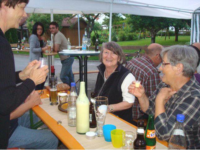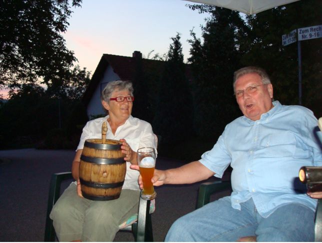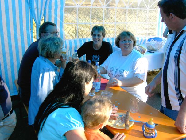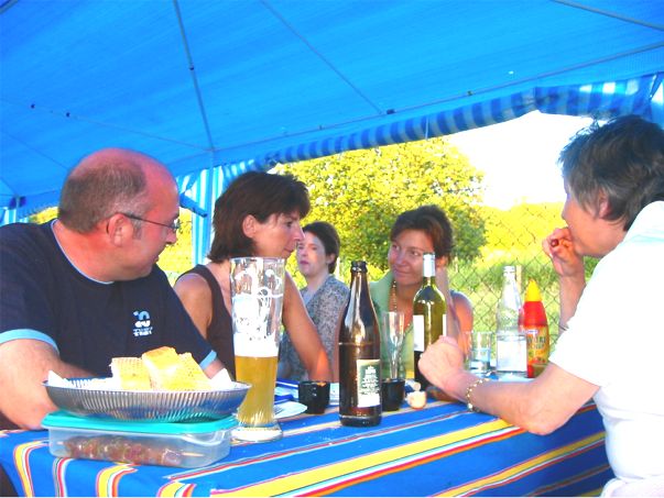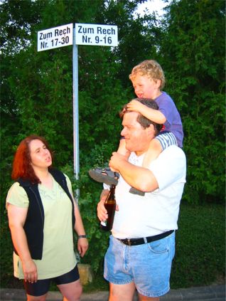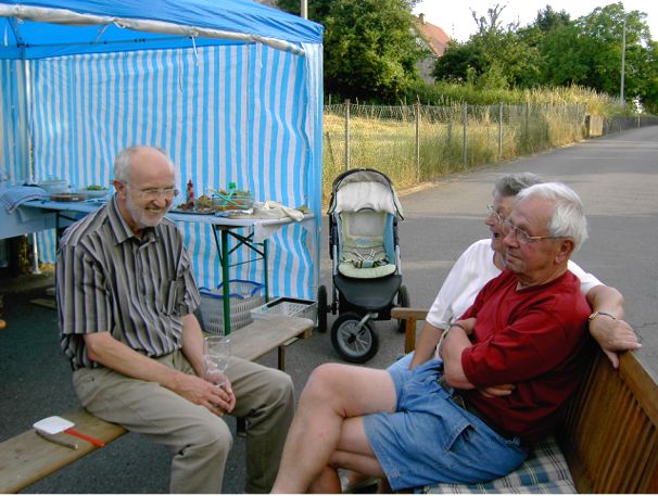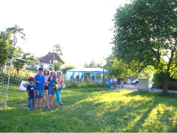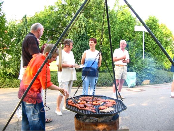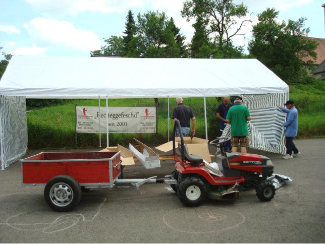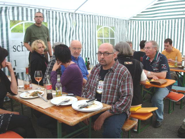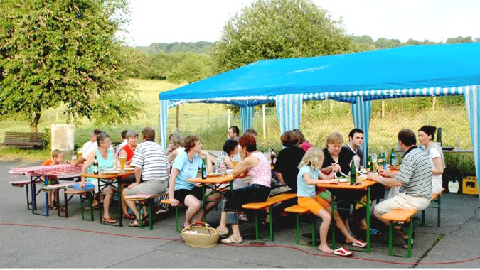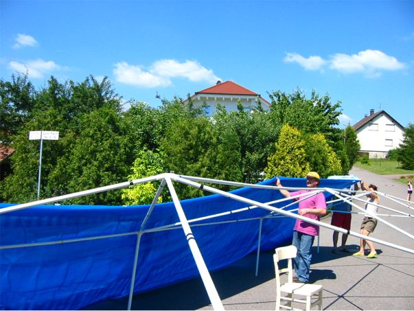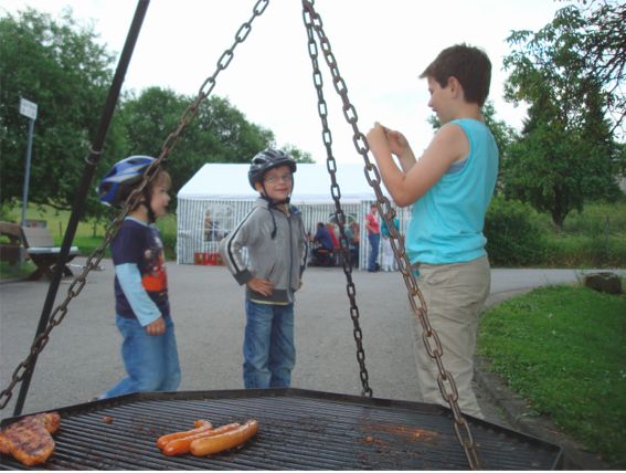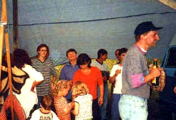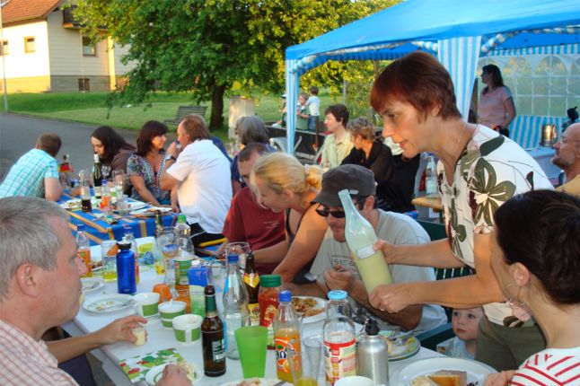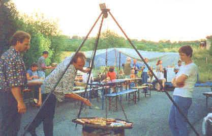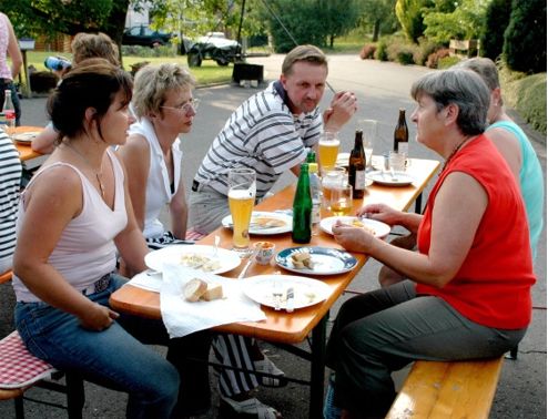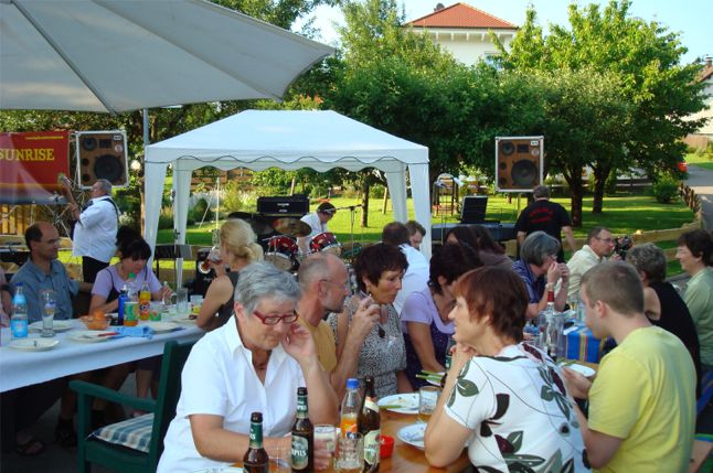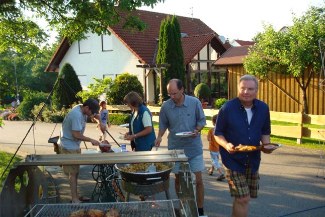 erstes Straßenfest Erstmals wurde in dem 1985 erweiterten Baugebiet "Zum Rech" ein Straßenfest gefeiert. Von Stefan "angeleiert" fanden die Anlieger in gemeinsamer Absprache schnell einen passenden Termin. Das für den Abend angekündigte Gewitter tat den Vorbereitungen keinen Abbruch, wohl aber sorgten aufziehende dunkelblaue Wolken dafür, dass kurzerhand mit einer Bauplane ein Zeltdach errichtet wurde.