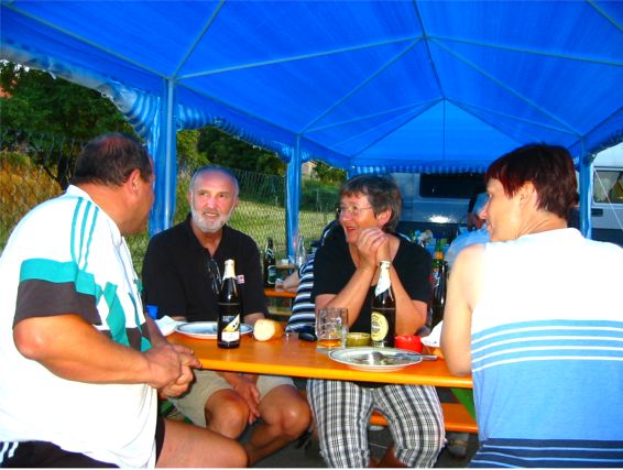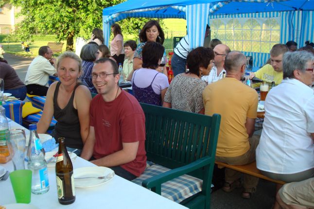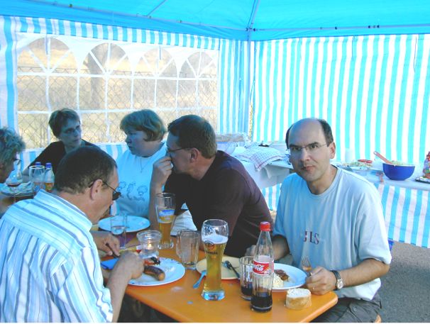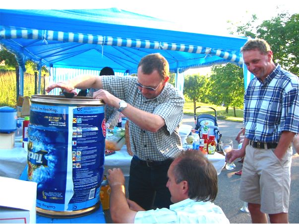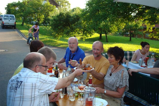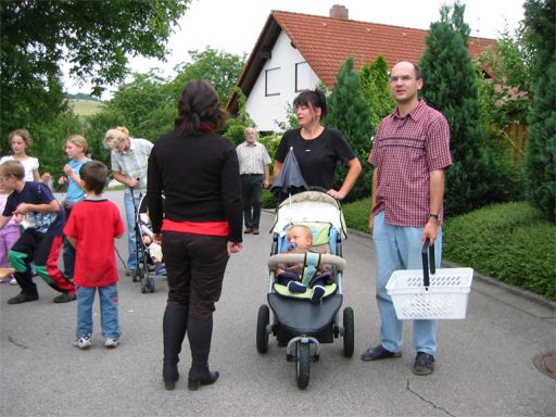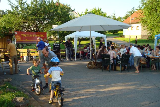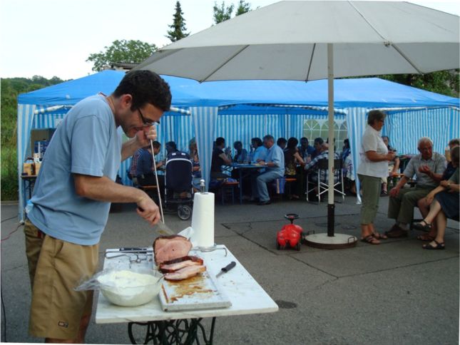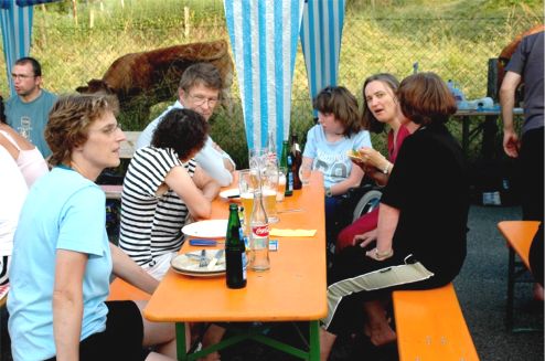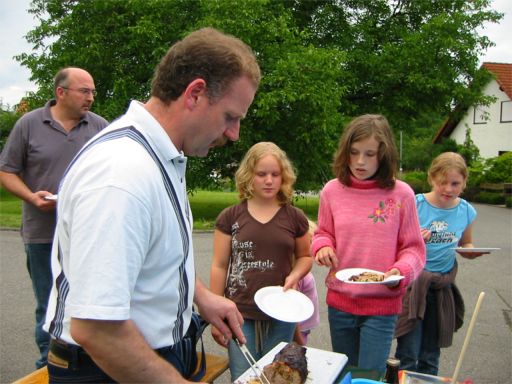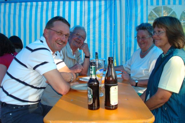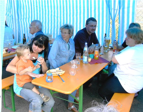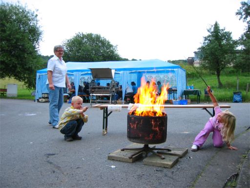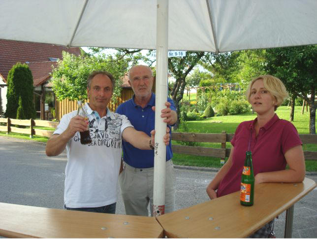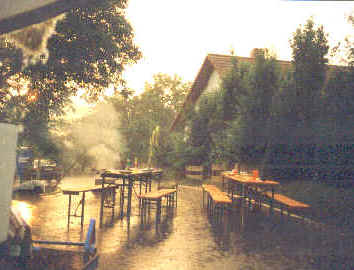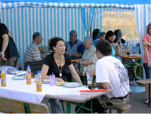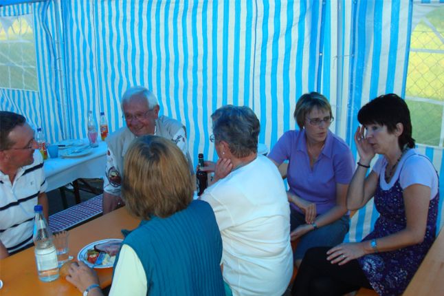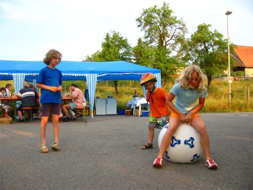 erstes Straßenfest Erstmals wurde in dem 1985 erweiterten Baugebiet "Zum Rech" ein Straßenfest gefeiert. Von Stefan "angeleiert" fanden die Anlieger in gemeinsamer Absprache schnell einen passenden Termin. Das für den Abend angekündigte Gewitter tat den Vorbereitungen keinen Abbruch, wohl aber sorgten aufziehende dunkelblaue Wolken dafür, dass kurzerhand mit einer Bauplane ein Zeltdach errichtet wurde.