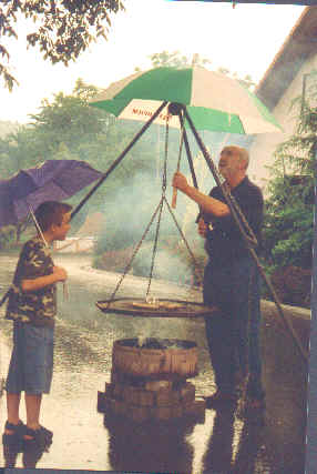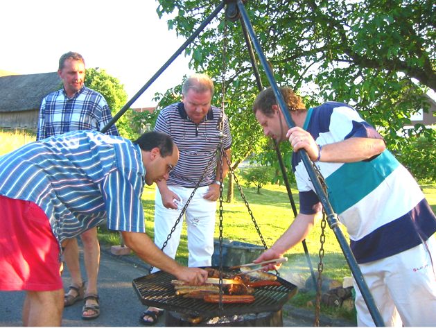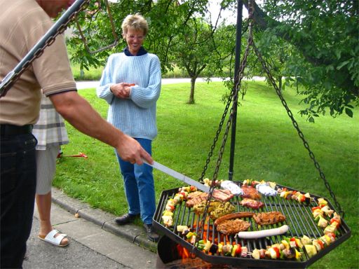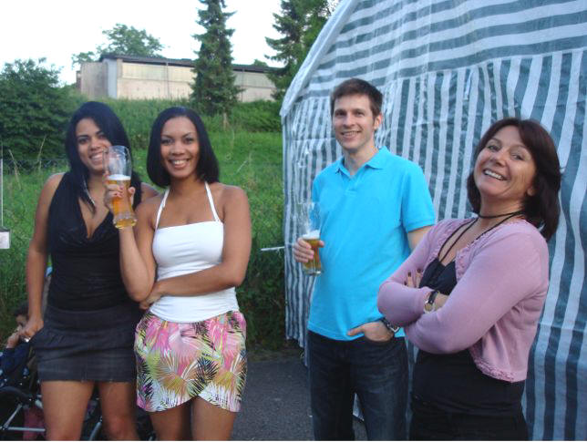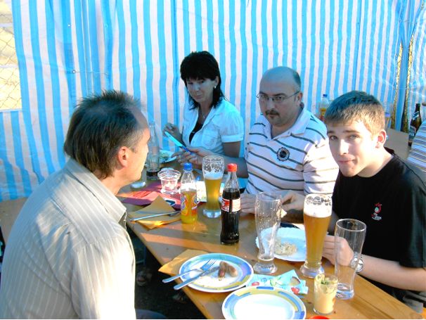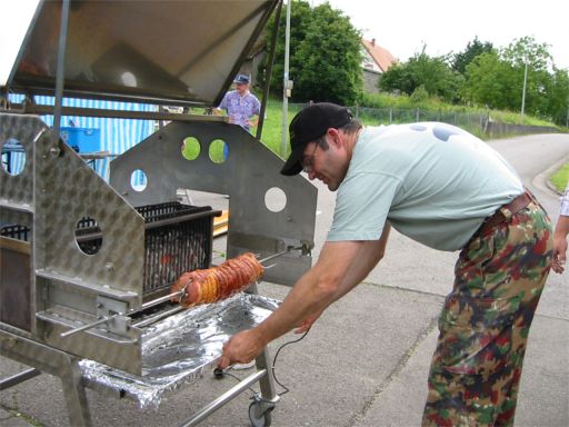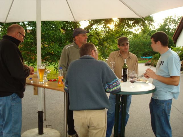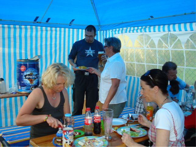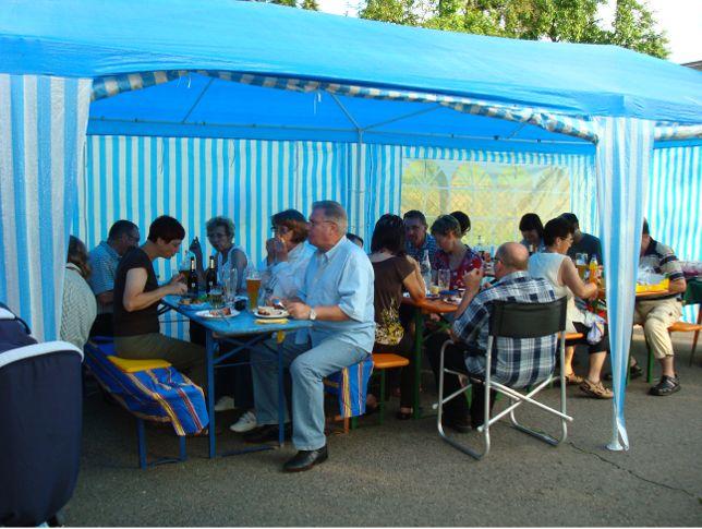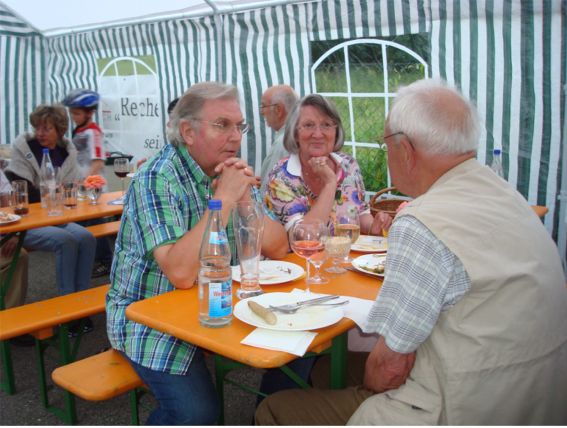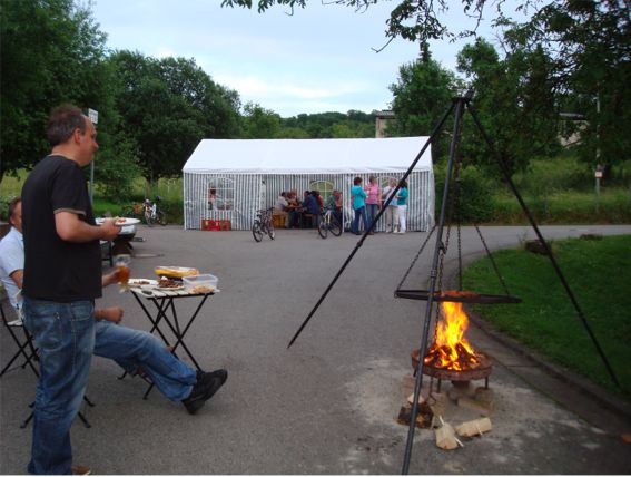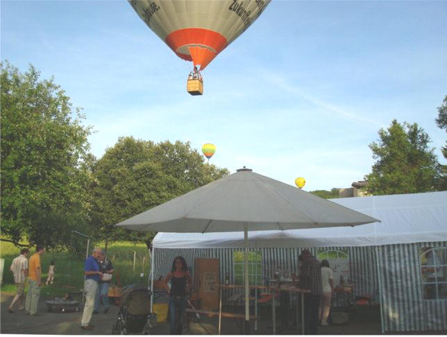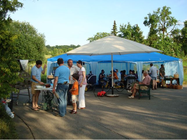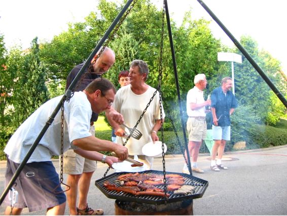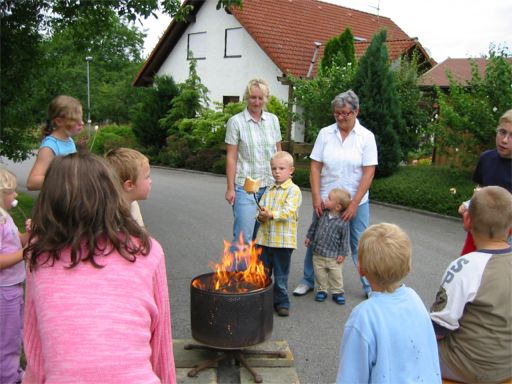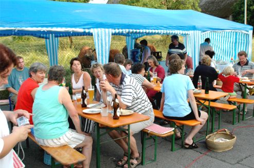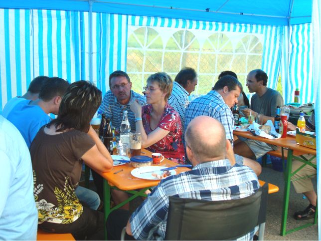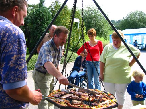 erstes Straßenfest Erstmals wurde in dem 1985 erweiterten Baugebiet "Zum Rech" ein Straßenfest gefeiert. Von Stefan "angeleiert" fanden die Anlieger in gemeinsamer Absprache schnell einen passenden Termin. Das für den Abend angekündigte Gewitter tat den Vorbereitungen keinen Abbruch, wohl aber sorgten aufziehende dunkelblaue Wolken dafür, dass kurzerhand mit einer Bauplane ein Zeltdach errichtet wurde.