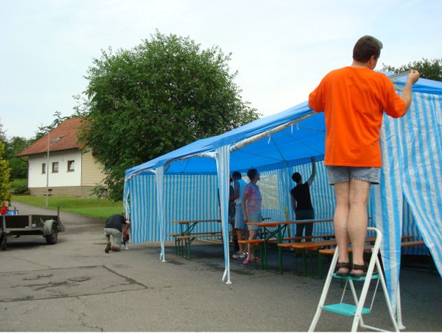 neue Rechegge-Zelt wird zum ersten Mal aufgebaut.